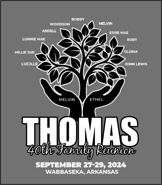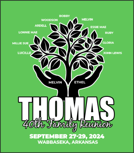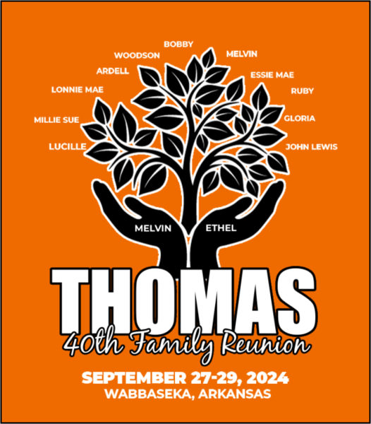 To ensure better service to you, the Thomas Family Reunion coordinator has decided to use the Novel T’s Reunion Service. Under this program, you will be able to order your reunion items directly from the company, thus simplifying the process. To make sure that you and your family are not left out of any part of this wonderful occasion, we ask for your full cooperation. You may order your family’s reunion items online here. Your order must be received by Novel T’s no later than August 30, 2024 to ensure that your family’s order is processed in time for your reunion on September 27-29, 2024. Orders received after the deadline may not be honored. So please, don’t miss out!